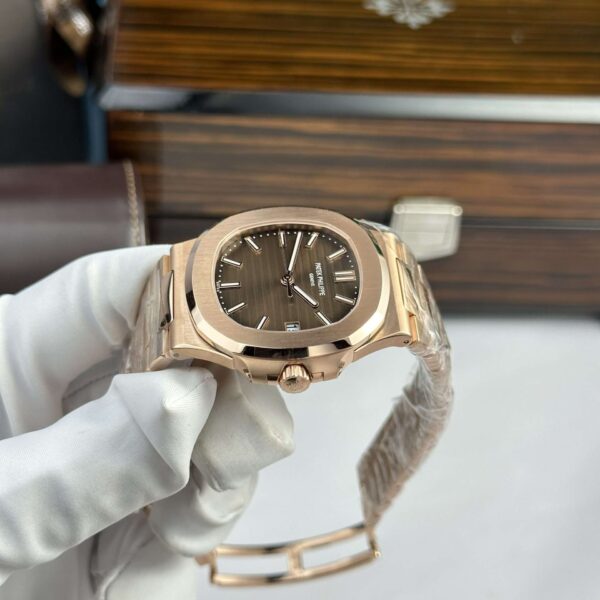 This Patek Philippe Nautilus 5711 18K Gold Super Clone has a luxurious gold-tone finish that looks stunning on the wrist. The automatic movement ensures accurate timekeeping, while the sapphire crystal glass protects against scratches. The gold-plated stainless steel bracelet adds a premium feel, making it a perfect replica of the original. With its smooth and elegant design, this Patek Philippe Nautilus replica is a great choice for any occasion.