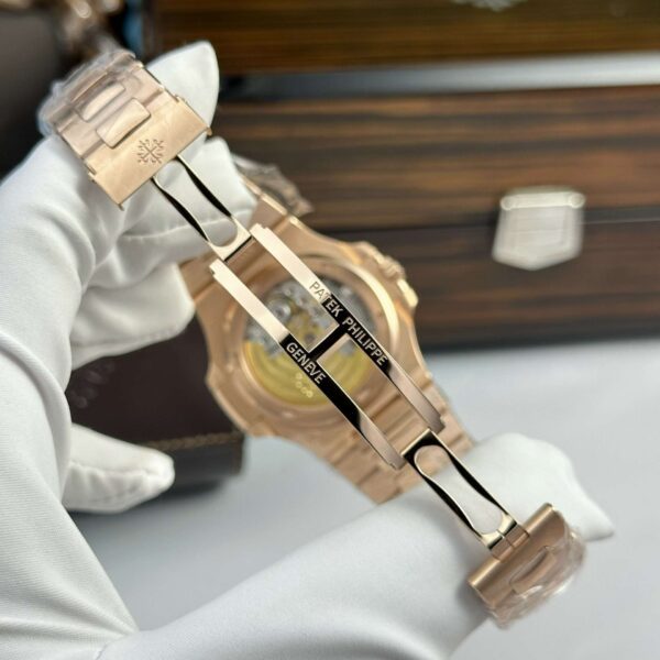 The gold-plated stainless steel bracelet gives this Patek Philippe Nautilus replica a premium and comfortable feel on the wrist. The smooth finishing adds to the luxurious appearance, making it perfect for formal or casual wear. The folding clasp provides a secure fit, ensuring that the watch stays in place all day. The bracelet is durable, stylish, and designed for long-term use.
