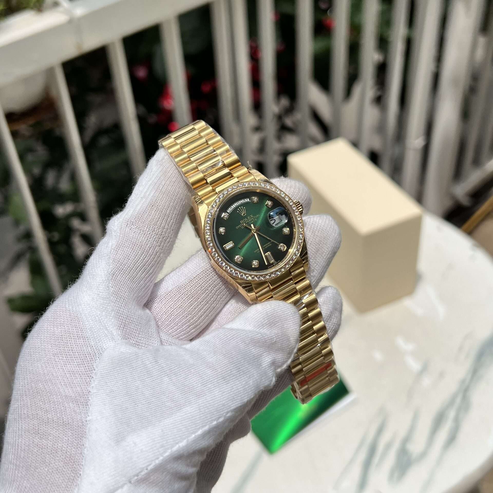 Rolex Replica 1:1 Watch Day-Date Green Dial With Diamonds EW 36mm | Super Clone Watch